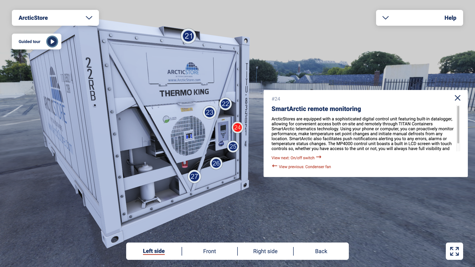 Med ARTool kan I som maskinproducent tilbyde jeres kunder en interaktiv 3D-maskinmanual. Her kan I tilføje punkter, der giver adgang til detaljerede instruktioner som tekst, billeder eller videoer om montage, vedligeholdelse, rengøring eller udskiftning af sliddele. I kan nemt administrere og opdatere indholdet via en brugervenlig back-end, så jeres kunder altid har opdateret og skræddersyet information tilgængelig. Giv jeres kunder en værdifuld service, der optimerer deres drift og reducerer nedetid..